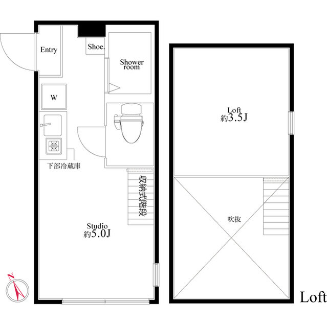 システムキッチン/1口ガスコンロ/バス・トイレ別/シャワールーム/ミニ冷蔵庫付/洗濯機室内/シューズボックス/フローリング/エアコン/ロフト/階段収納/温水洗浄便座/ピクチャーレール/インターネット無料