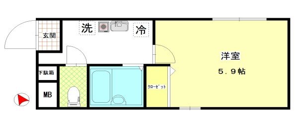 1Rを中心とした間取りでシングルの方にオススメ。