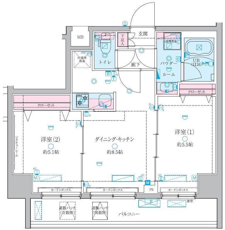 | 設備 | オートロック , 光ファイバー対応 , 宅配ボックス , 浴室換気乾燥機 , ウォシュレット , 玄関ダブルロック , ディンプルキー , 独立洗面台 , 脱衣室 , バストイレ別 |