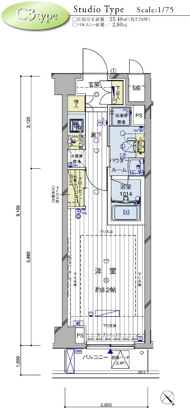 | 間取り・専有面積 | 1K / 25.48m²~ |