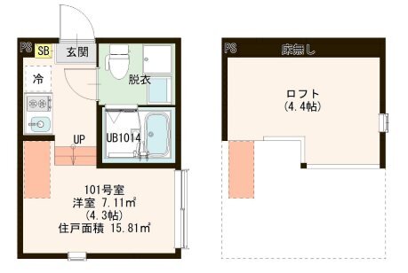 | 間取り・専有面積 | 1R+ロフト / 15.81m²~ |
