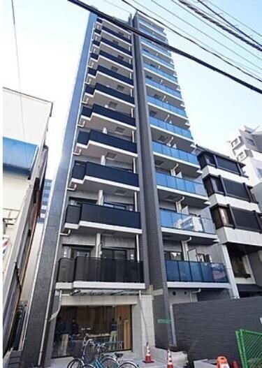 建物は、ダークカラーを基調としたスタイリッシュな外観が特徴で、都会的で洗練された雰囲気を漂わせています。地上13階建て・全43戸の規模を持ち、シングル向けの機能的なワンルーム・1Kタイプから、DINKS向けのゆとりある2LDKタイプまで、多様なライフスタイルに対応した住戸プランを取り揃えています。