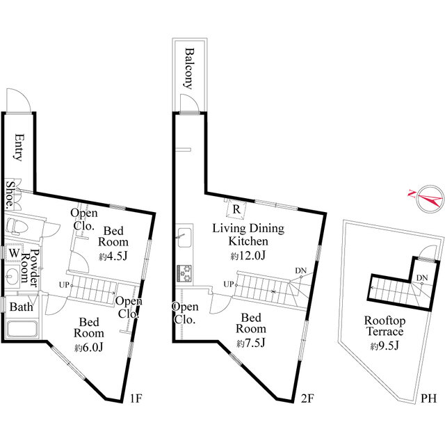 | 特徴 | 敷金・礼金0 , デザイナーズ , 二人入居可 , 保証人不要 , メゾネット , 1DK以上 , 築浅 |