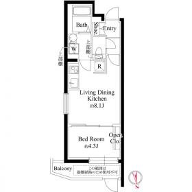 | 特徴 | 敷金・礼金0 , デザイナーズ , ペット相談可 , 二人入居可 , 保証人不要 , インターネット無料 , ホワイトフローリング , 新築・築浅 , 1DK以上 |